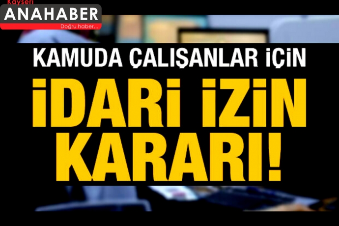 "30 Nisan 2021 itibarıyla sağlık, güvenlik, acil çağrı gibi kritik görev alanları hariç olmak üzere hizmetlerin asgari personelle yürütülmesi, yine hizmetlerin yürütülmesi için asgari personel bulundurulması kaydıyla kamu kurum ve kuruluşlarındaki tüm çalışanların 10 Mayıs Pazartesi ve 11 Mayıs Salı günleri tam gün, 12 Mayıs Çarşamba günü yarım gün idari izinli sayılmaları, Sayın Cumhurbaşkanımızca uygun görülmüştür."