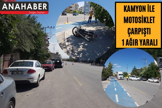 Kayseri’nin Develi ilçesinde motosiklet ile kamyonun çarpışması sonucunda bir kişi ağır yaralandı.