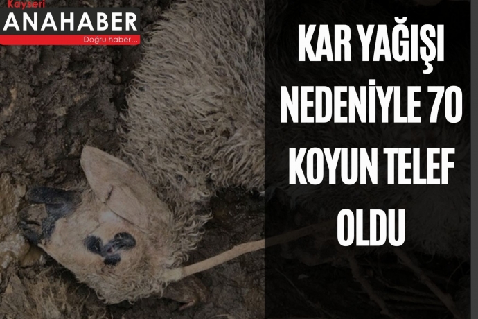 Yahyalı’da yoğun şekilde yağan kar nedeni ile 70 koyunun telef olurken, 4 koyun da kayboldu. Merada otlanırken kar yağışına yakalanan koyunların telef olduğu, kar ve çamurla kaplanmış koyunların durumu içleri acıttı.
