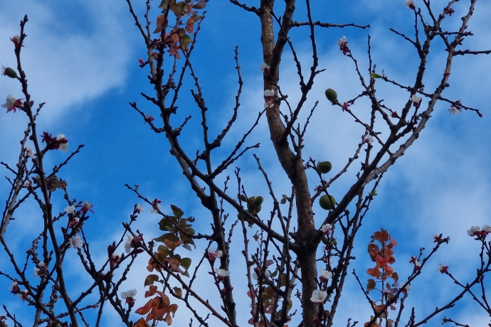 Kayısı ağacı kış ortasında çiçek açıp meyve verdi