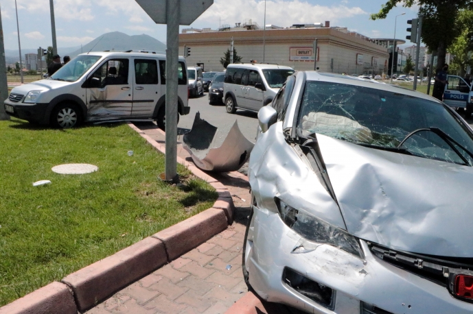 Çarpışmanın etkisiyle sürücüsünün direksiyon hakimiyetini kaybettiği otomobil, kırmızı ışıkta bekleyen 38 YT 255 plakalı otomobile çarptı.