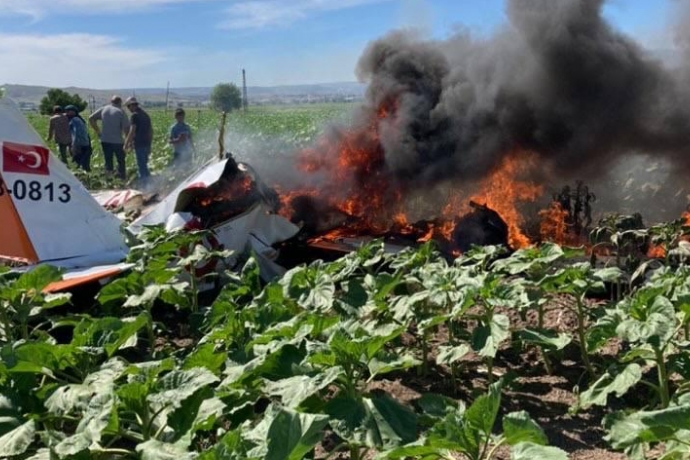 Kayseri’de Kocasinan ilçesine bağlı Hasan Arpa Mahallesi’nde sebebi henüz bilinmeyen bir sebeple eğitim uçağı düştü. Kazayı görenlerin ihbarı üzerine olay yerine AFAD ve itfaiye ekipleri sevk edildi. Yanan uçağı söndürme çalışmaları sürerken, uçağın içinde bulunan 2 mürettebatı arama çalışmaları sürüyor.