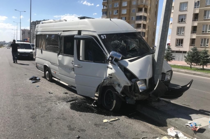 Kayseri’de 4 aracın karıştığı kazada, direğe çarpan işçi servisindeki 7 kişi yaralandı.