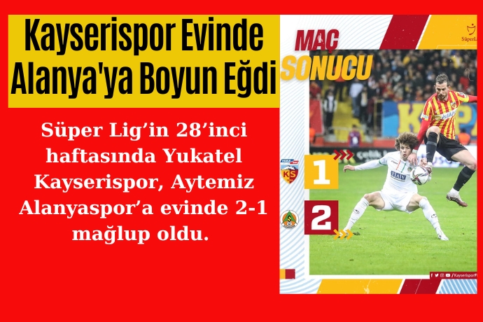 Süper Lig’in 28’inci haftasında Yukatel Kayserispor, Aytemiz Alanyaspor’a evinde 2-1 mağlup oldu.