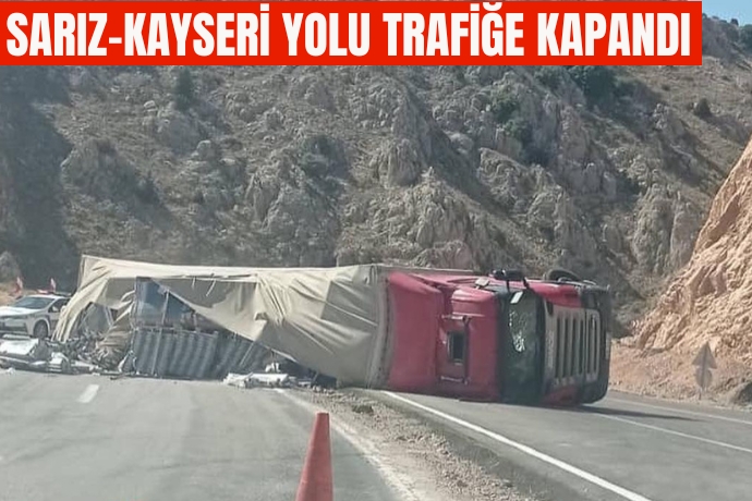 Edinilen bilgiye göre Kayseri'nin Sarız ilçesi yakınlarında, Dokuzdolanbaç mevkiinde meydana gelen kazada, sürücüsünün direksiyon hakimiyetini kaybettiği tır, yan yattı. Meydana gelen kazada Kayseri-Sarız yolu trafiğe kapandı. Kaza sonrasında polis ekipleri yolda güvenlik önlemi aldı.