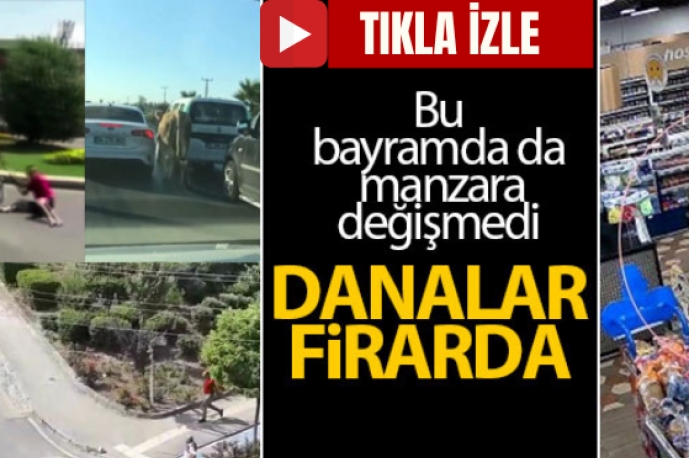 Bu bayramda da manzara değişmedi. Sahiplerinin elinden firar eden kurbanlık danalar ortalığı birbirine kattı. Kimi sahibini metrelerce sürüklerken kimi ise markete daldı. İşte firardaki kurbanlıklardan görüntüler