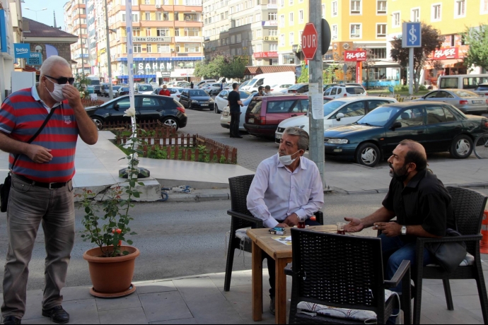 Kayseri İl Emniyet Müdürlüğü ekiplerince korona virüsün yayılmasını önlemek amacıyla il genelinde maske denetimi aralıksız sürüyor. Denetimler kapsamında ekipler, çay ocağı, kuaför, restoran gibi mekanlarda denetimlerini yoğunlaştırırken, maske takmayan ve uygunsuz kullanan vatandaşlara ceza uygulandı. Çay ocağında arkadaşıyla çay içerken maske takmayan bir vatandaşın "Bu böyle olmaz, sokağa çıkma kısıtlamasını koyarsın herkes evde kalır. Burası açık ki çay içiyoruz" demesi üzerine yoldan geçen maskeli bir vatandaş tepki göstererek, "Sen çay, sigara içeceksin diye niye bana sokağa çıkma yasağı uygulansın ki? Yemeğimi evimde yiyorum ama bu vaziyette yemiyorum. Sokağa çıkma yasağı demek o kadar kolay mı, senin yüzünden ben neden yasağa maruz kalayım? Bu vaziyette olduğunuz için hastalık çoğalıyor, insanlar ölüyor" diye tepki gösterdi.