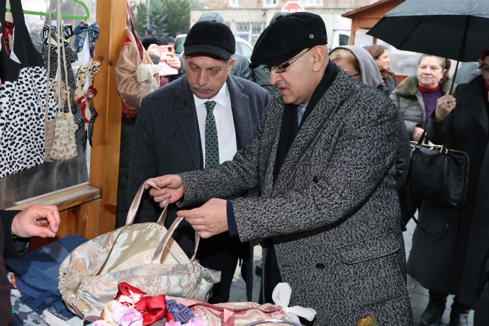Talas Belediye Başkanı Mustafa Yalçın, AK Parti Kayseri Milletvekili Murat Cahid Cıngı ile Maharetli Eller Kadın Üretici Pazarı’nı ziyaret ederek alışveriş yaptı.