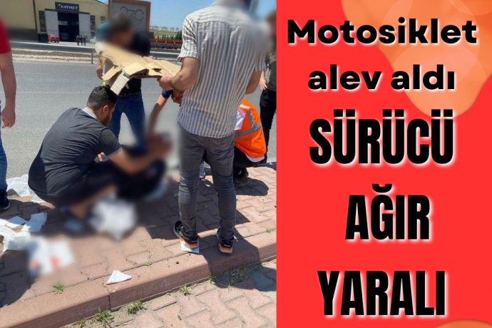 Motosiklet alev aldı: Sürücü ağır yaralı