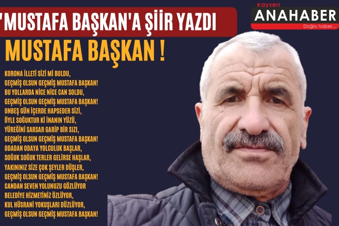 Talas Belediye Başkanı Mustafa Yalçın'ın Covid-19'a yakalandığını öğrenen ilçe sakinlerinden İbrahim Mucuk, "Korona illeti sizi mi buldu? Geçmiş olsun Mustafa Başkan" ifadeleriyle başlayan şiir yazdı.