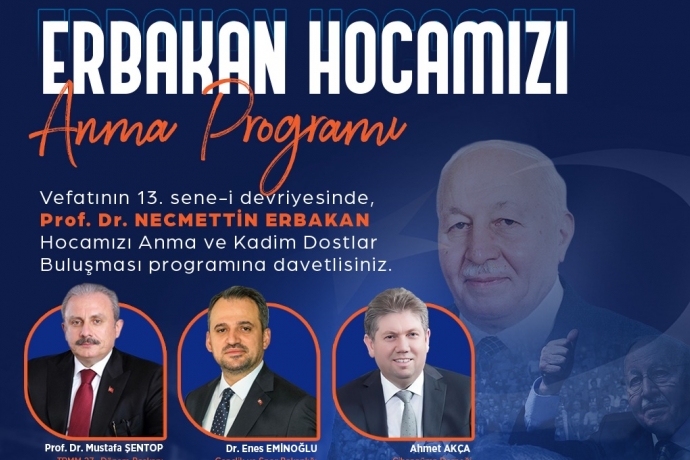 Vefatının 13. yılında Necmettin Erbakan'ı anma ve Kadim Dostlar Buluşması programı bu güns saat 14:00'da Sabancı Kültür Merkezi'nde düzenlenecek.