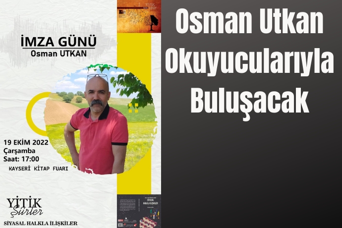 "Yitik Şiirler" ve "Siyasal Halkla İlişkiler" adında iki kitabı bulunan Osman Utkan, Kayseri Kitap Fuarında okuyucularıyla buluşacak.