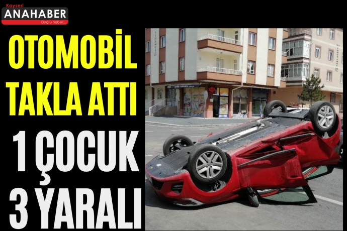Kayseri'nin Melikgazi ilçesinde otomobil ile hafif ticari aracın çarpışması sonucu meydana gelen kazada, otomobillerden biri takla attı. Takla atan otomobilde bulunan 1'i çocuk 3 kişi yaralandı.