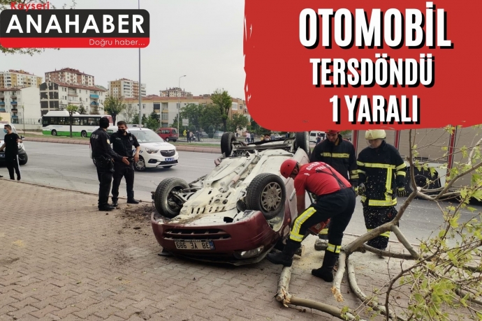 Kayseri'nin Kocasinan ilçesinde sürücüsünün direksiyon hakimiyetini kaybettiği otomobil kaldırıma çıkarak ters döndü. Kazada otomobil sürücüsü yaralandı.