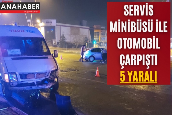 Kayseri'de servis minibüsü ile otomobilin çarpışması sonucu meydana gelen trafik kazasında 5 kişi yaralandı.