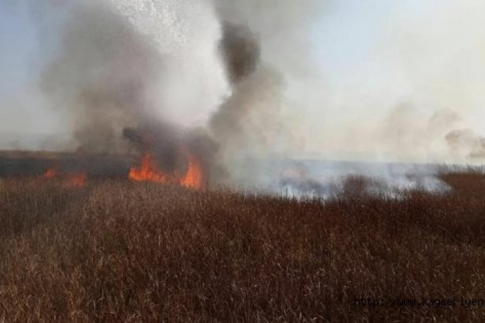 İhbar üzerine olay yerine itfaiye ekipleri sevk edildi. Sazlık içindeki bir adada meydana geldiği için ekiplerin müdahale edemediği yangın, kendiliğinden söndü.