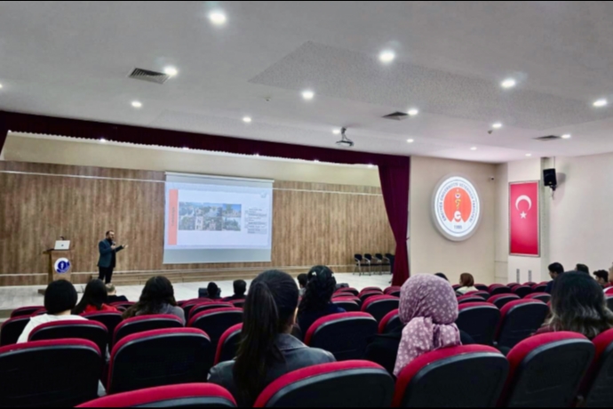 Konferans Salonu’nda düzenlenen oryantasyon seminerinde öğrencilerle buluştu. Sanat tarihçisi