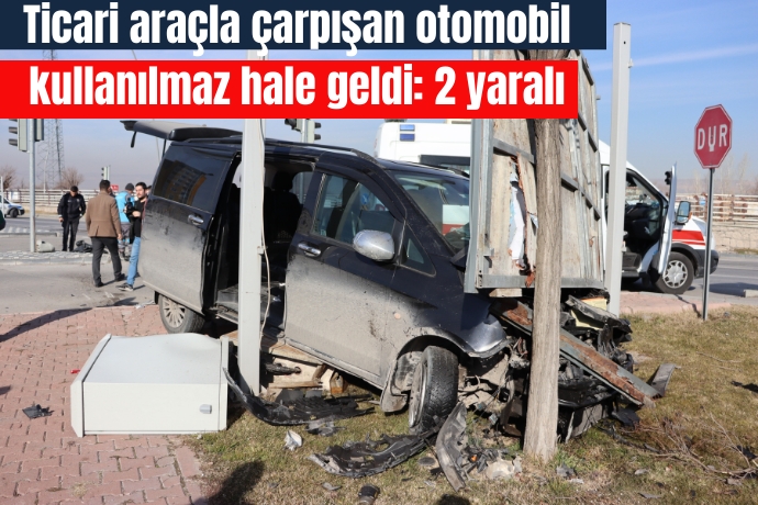 Kayseri'nin Kocasinan ilçesinde ticari araçla çarpışan Tofaş marka otomobil kullanılmaz hale çıkarken, içerisindeki 2 kişi yaralandı.