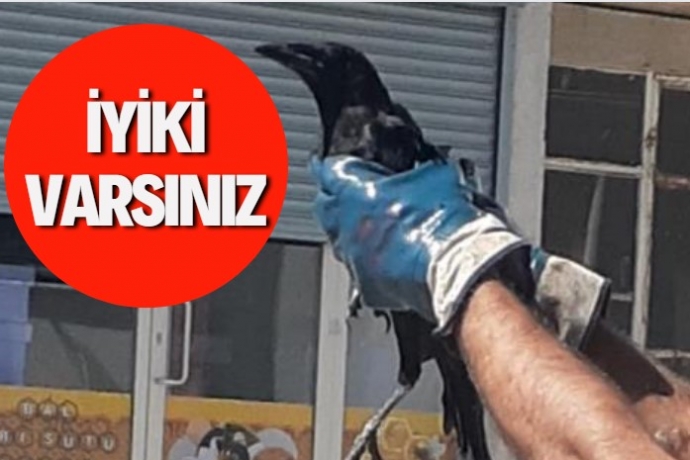 Tomarza'da ayağı sıkışan kargayı itfaiye kurtardı
