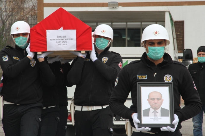 Kayseri Devlet Hastanesi morgundan alınan, 2 çocuk babası İlkay Salın'ın cenazesi, İl Emniyet Müdürlüğü bahçesine getirildi. Buradaki törene, Salın'ın ailesi ve mesai arkadaşları katıldı.