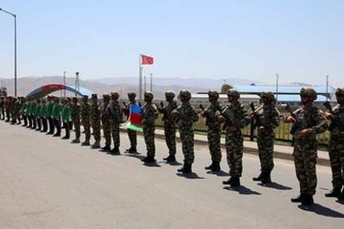 Türk askeri 10 Aralık Zafer Töreni için Azerbaycan'da