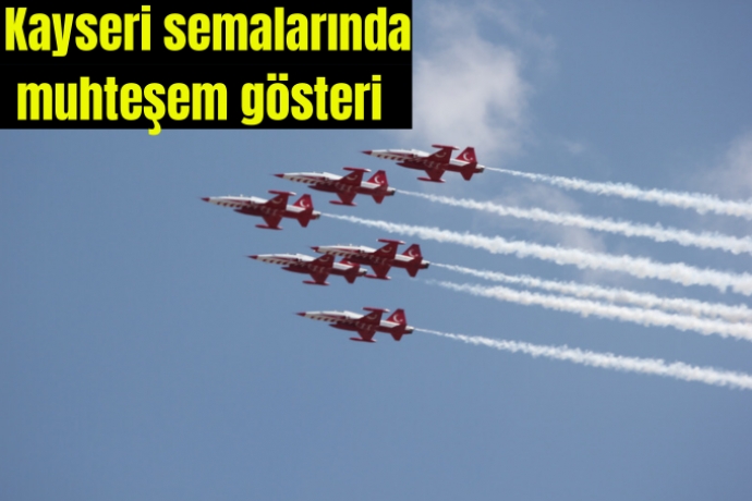 Türk Hava Kuvvetleri’ne bağlı akrobasi timi Türk Yıldızları, Kayseri semalarında izleyenlere görsel şölen yaşattı. Kayseri’de gösteri uçuşu yapan Türk Yıldızları, gökyüzüne ay yıldız çizerek, şehrin farklı noktalarında kareografi uçuşları gerçekleştirdi. Türk Yıldızları’nı vatandaşlar da büyük ilgi ile izledi. Cumhuriyet Meydanı’nda gösteriyi izleyen Kadriye Akkar, “Çok mutluyuz. Bu tür aktiviteler bizi gururlandırıyor. Türkiye’nin pilotlarının ve hava üslerinin bu kadar başarılı olması bizi çok gururlandırıyor” dedi. Gösteriyi izleyen Özge Akkar ise, “Biz denk geldiğimiz için çok şanslıyız. Özellikle oğlum böyle bir gösteriye denk geldiği için çok sevindik. Türk askerini ve Türk pilotlarını kutluyorum. İnsanı gururlandırıyorlar. Göğsümüzü kabarttılar. Tebrik ediyorum. Bu imkanı da bize sundukları için teşekkür ediyorum” ifadelerini kullandı.
