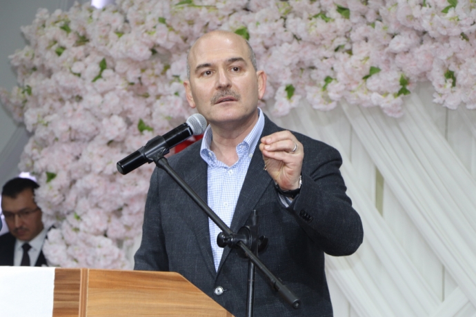 Bakan Soylu burada yaptığı konuşmada, “Bize Amerika’dan ve Avrupa’dan parmak sallamalar özgüvenimizi almak ve bizi talihsiz bir duruma itmek içindir. Kafaya taktılar. Bunu yapacaklardı. Ama bu milleti tanımıyorlar. Bu milletin hasletlerini bilmiyorlar. Türkiye 21. asrın başından itibaren başka bir programı devreye koydu. Bir, altyapımızı güçlendireceğiz. İki, istikrarımızı devam ettireceğiz. Üç, çevremizdeki ülkelerle ve dünyayla tarihin bize sunduğu ve irtibat kurduğumuz ülkelerle bir vesileyle buluşacağız. Dört, ticari ilişki ağımızı geliştireceğiz. Türkiye bunu yaptı. Yetmedi. Mücadele edeceksiniz. Silahı kimden alacaksınız. Amerika’dan mı? Silahı kimden alacaksınız Avrupa’dan mı? Nereden alacaksınız? Zeytin Dalı Operasyonu başladığında şu kulaklarımla bu gözlerimle gördüm. Ambargoyu koydular bizi orada karanlıkta bırakmak istediler. Mühimmatsız bırakmak istediler. Bizim evlatlarımız yetiştiler. Bizim Türk mühendislerimiz. Bizim evlatlarımız orada mühimmatsız bırakmadılar. Kötü komşu bizi mal sahibi yaptı” diye konuştu.
