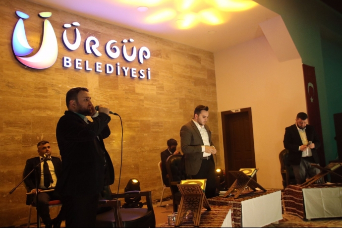 NEVŞEHİR (İHA) - Ürgüp Belediyesi Sabahat Toksöz Kültür Merkezi’nde düzenlenen programa ulusal ve uluslararası birincilikleri olan, Ayasofya, Çamlıca ve Selimiye gibi camilerde de görev yapmış hafızlar tarafından katılımcılara Kur’an ziyafeti sunuldu.