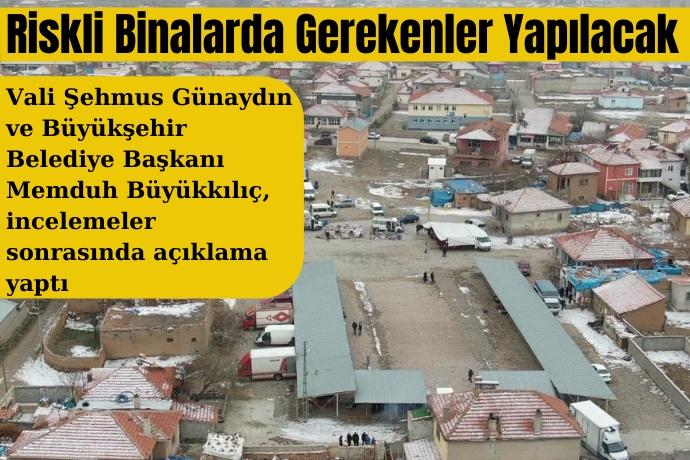 Gece saatlerinde meydana gelen deprem nedeniyle çatlayan ve duvarları yıkılan yapıları inceleyen Vali Şehmus Günaydın ve Büyükşehir Belediye Başkanı Memduh Büyükkılıç, ekiplerden bilgi alarak vatandaşları dinledi. İncelemeler sırasında açıklama yapan Vali Günaydın, “Riskli binalara gereken işlemler yapılacak” dedi.