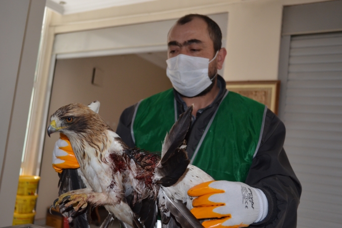 Kayseri'nin Bünyan ilçesinde vatandaşların yaralı olarak bulduğu şahine Bünyan Belediyesi yetkilileri sahip çıktı.